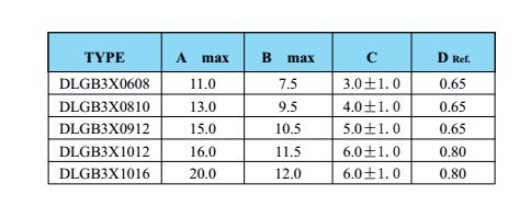 四、三腳電感DLGB3X封裝尺寸列表: